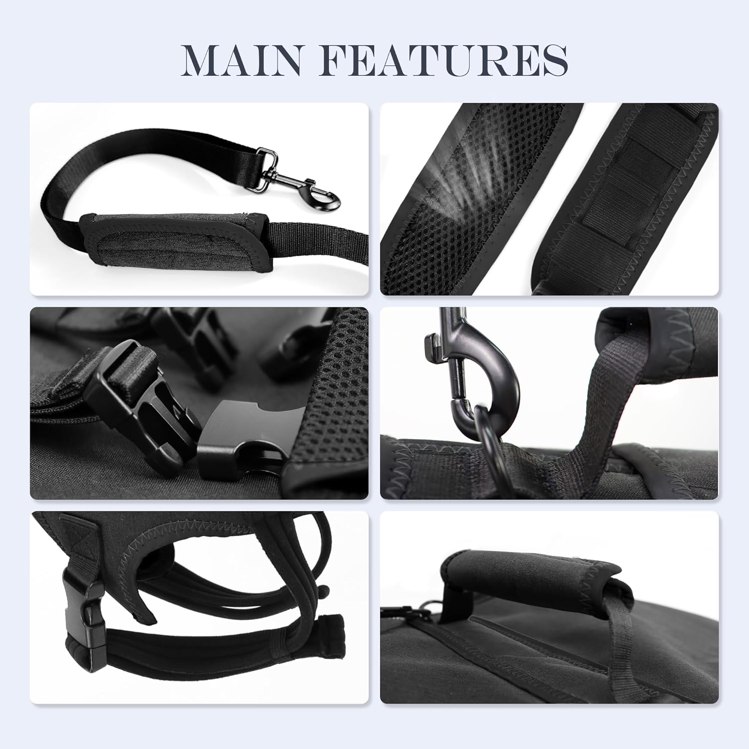 • Senior Pet Care Lift Harness:The outer Oxford fabric is durable and easy to clean. The inner 250G sandwich mesh boosts breathability, preventing overheating and moisture. The adjustable strap offers extra support for the back legs, ensuring comfort
